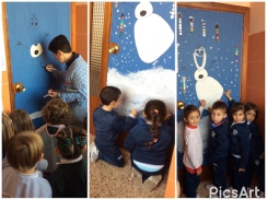 Al corredor d’Infantil l’hivern s’ha fet present en forma de murals decoratius que els nostres alumnes han realitzat dins de les sessions de plàstica. Els xiquets i xiquetes han estat coneixent diferents característiques de l’estació més freda de l’any i com ja prompte finalitzarà –com ja estem experimentant-ho- vos mostren com ha quedat decorat: portes boniques, decorades amb motius de fred i neu que amb molt d’entusiasme han pintat. Han après refranys adients a l’hivern i han escrit utilitzant la tècnica de l’estampació; retallant, han confeccionat flocs de neu, barrets divertits i també, han aprés a fer cucurutxos amb paper per l’ arbre nevat.