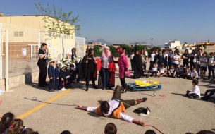 El passat dijous 30 de març els alumnes de 3r i 4t de primària férem l’eixida complementària del 2n trimestre. Visitàrem la base militar de la UME a Bètera. Els alumnes participaren del treball que realitzen, primer amb una explicació audiovisual de totes les accions que duen a terme i després feren una demostració d’extinció d’incendis, en la qual ells participaren utilitzant les mànegues d’aigua i els vehicles cuba. Altra activitat que ens va entusiasmar va ser l’exhibició del gossos ensinistrats, on els alumnes s’amagaven i els gossos mitjançant l’olfacte detectaven la seua presència. Per últim i en grups, feren activitats de reanimació i primers auxilis amb els monitors i maniquís. L’activitat va estar molt interessant i va ser instructiva pels casos pràctics que ens proposaren. Els alumnes s’ho van passar d’allò més bé i molt contents tornaren a casa. A l’enllaç teniu totes les imatges.