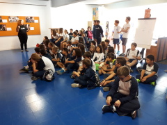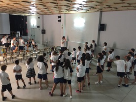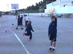 Els alumnes de 6è de primària, durant tres sessions d’educació física, s’han sentit mestres i han ajudat als alumnes d’infantil 3, 4 i 5 anys a desenvolupar activitats i exercicis de psicomotricitat i habilitats bàsiques. Activitats com desplaçaments, girs, salts… coordinats amb la percepció espacial, temporal. Els alumnes de sisè han acompanyat en tot moment aquest procés i han pogut experimentar l’evolució progressiva dels alumnes i la satisfacció del compartir i ajudar als altres.