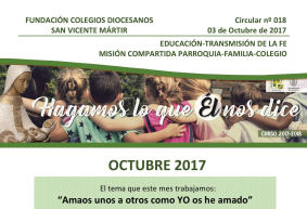 Este mes d’octubre a més del tema propi “Estimeu-vos els uns als altres com Jo us he estimat” abordem el DOMUND i ens preparem per a viure amb sentit cristià la festivitat de Tots els Sants. També recordem el nutrit santoral del mes d’octubre. Vos deixem a l'apartat de les circulars de Pastoral el full de Reflexió d'octubre. Confiem que us siga d’ajuda.