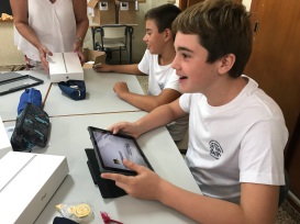 La passada setmana els alumnes de 6é de primària van ser els afortunats en rebre els desitjats iPads. “Open the box”, així és diu el primer dia en què els alumnes obrin els iPads i els expliquem les nocions bàsiques. La satisfacció i els nervis es van apoderar dels xiquets i xiquetes i van deixar anar les emocions com el qui rep el regal més esperat de l’any. Els professors encarregats els vam explicar el bon ús que han de fer del nou dispositiu i que, en posteriors sessions, anirem posant-los al dia en l’ús acadèmic: correu electrònic, instal·lació d’aplicacions, projectar a la pantalla… Un dia per a recordar, de segur. A l’enllaç de la imatge teniu alguns dels moments.