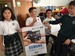 Aquest mes d'octubre a la classe de 6é de Primària hem treballat la Campanya del DOMUND (Diumenge Mundial de les Missions) elaborant cooperativament sis cartells amb el lema d'enguany "Canvia el món". Hem investigat sobre el treball dut a terme pels missioners en els països més desfavorits, com treballen per erradicar la pobresa, l'analfabetisme, la mancança d'aigua potable, l'assistència mèdica, les infermetats, la guerra de l'Iraq, Afganistan, Somàlia i Síria, els homicidis, la violència domèstica, les armes, l'ajuda als refugiats, als xiquets "soldats", als xiquets "explotats" per a treballar, a les dones enganyades i portades a l'estranger sense un treball digne ... Nosaltres volem col·laborar amb els missioners i missioneres en fer visible per mitjà d'uns cartells propis de cada grup de classe, que som amics de Jesús, i com ells fem possible el seu manament: "Anar pel món i fer deixebles seus" (Mt.28, 18-20). A l'enllaç de la imatge teniu els millors moments.
