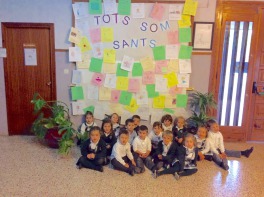 Què i com celebrem esta festivitat? Ahir al col·legi vam celebrar la festivitat de Tots Sants. A infantil i primer cicle de primària vam conéixer la vida dels Sants, perquè ells són un model de vida, identificats amb Jesús. Hem preparat uns "post-it" on investigaven sobre el seu Sant: quin dia se celebra, qui era eixe Sant/a, que va fer... i s'han imaginat i dibuixat cada xiquet/a com a Sant. Com podeu observar a les imatges tenim vertaders artistes al nostre centre ja que són molt creatius. La resta de l’alumnat de primària i de secundària, vam reflexionar sobre el missatge que el Sant Pare Francesc ens envia en la seua carta, la Gaudete et Exsultate, on ens anima a viure una vida plena i no mediocre i ens diu que TOTS ESTEM CRIDATS A SER SANTS! Vam vore el vídeo i llegir l’oració a classe de tutoria on vam treballar una dinàmica plantejant-nos com podem arribar cadascú a ser Sant. Podeu veure algunes de les nostres conclusions a les imatges. Per a finalitzar vam cantar tots junts "Para ser Santo de Jesed".