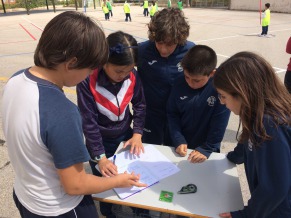 Esta setmana els alumnes de 6é han treballat les matemàtiques i la memòria operativa resolent problemes de manera lúdica. Els alumnes, agrupats en 5 persones havien de fer carreres de relleus. El primer company anava a la zona dels cons per llegir el problema. Després tornava al seu grup per explicar-lo i entre tots resoldre'l. En cas de dubte, seria el segon companys qui anava a llegir el problema de nou i centrar-se en el dubte que els havia sorgit. Així successivament. D'aquesta manera els alumnes treballen de forma cooperativa i escoltant-se uns als altres, a més, d'aprendre diferents conceptes matemàtics. A l'enllaç teniu més imatges.