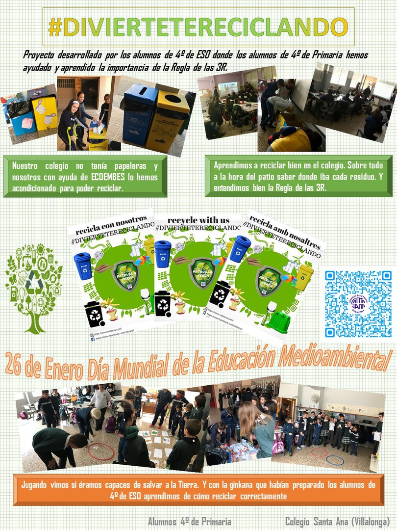 Els alumnes de 4t d’ESO han estat treballant dur en el projecte de medi ambient del centre. Pretenen conscienciar a tota la Comunitat Educativa sobre la importància del reciclatge, no sols dels residus que van als contenidors blau, groc i verd sinó també dels residus que portem al punt verd. Ens expliquen perquè cal utilitzar l’ecoparc mòbil que arriba a Villalonga cada dilluns i els beneficis que s’obté amb la TASA COR. Esperem que siga un èxit aquest nou projecte de medi ambient i vos animem a que col·laboreu amb nosaltres. En aquesta web teniu tots els detalls de les coses que podeu portar: https://bit.ly/2Bx3pQm. També, a l'enllaç de la imatge teniu més informació dels cartells.