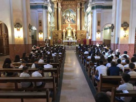 Amb alegria i bons propòsits d'Accció de Gràcies, els alumnes des de 3r de Primària fins a 4t. d' ESO, vam celebrar l'Eucaristia de fi de curs a la nostra Parròquia. En Vicent, el nostre rector, ens dirigí unes paraules en l'homilia fent-nos vore què en un món on es viu tan de pressa tot, necessitem reflexionar abans d'actuar i que per a aconseguir-ho comtem amb la presència de l'Esperit Sant, Déu en la nostra vida. També ens recordà la nostra obligació com a cristians de ser acollidors i solidaris amb les persones que arriben al nostre entorn després de viure terribles experiències. Al col·legi, hem tingut la sort de rebre tres d'aquests xavals als que estimem molt i formen ja part de la nostra comunitat educativa. En finalitzar i acompanyats per les cançons del nostre Cor d'alumnes, hem donat gràcies a Déu per tot el que ens ha regalat al llarg del curs recordant el que Ell ens diu: "VOSALTRES SOU ELS MEUS AMICS". Ací teniu algunes imatges: http://bit.ly/2KqNcS0.