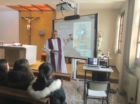 Amb alegria i bones intencions vam anar a trobar-nos amb Jesús a la nostra Parròquia. Li vam demanar al nostre Senyor que ens ajude amb el nou curs i que intentem apropar-nos a la vida dels Sants, com el que hem celebrat hui, Sant Francesc d’Assís. En Vicent ens ha parlat de la seua opció de vida per la mendicitat i la pobresa contrastant amb l’entorn que ens envolta d’acumulació de riquesa i poder. També ens va recordar la nostra obligació com a cristians de ser acollidors i solidaris amb les persones amb necessitat. Aprofitant la Setmana pel clima, els alumnes van voler oferir els seus treballs de reivindicació per un planeta més net i més responsable, recordant el que el Papa ens diu en la seua encíclica “Laudato si” on critica el consumisme i desenvolupament irresponsable. Per a finalitzar, i acompanyats per les cançons del nostre Cor d'alumnes, vam donar gràcies a Déu per tot el que ens envolta, recordant el que Ell ens diu: "TU ETS EL MEU FILL ESTIMAT". Ací teniu algunes imatges: https://photos.app.goo.gl/RMyEJZH1Umngr1nS8