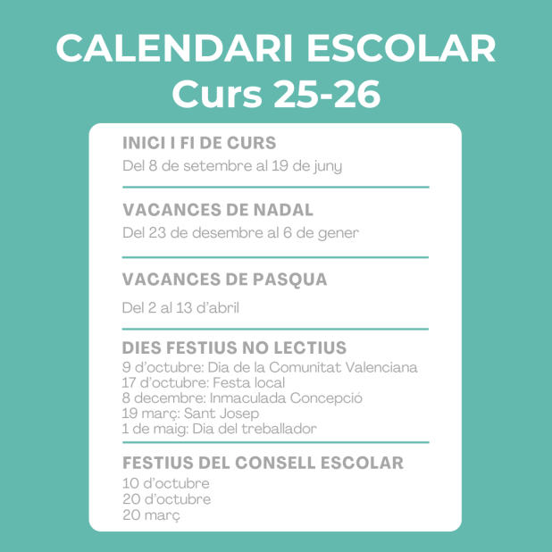 Durant tot el curs, des d’Infantil fins a Secundària, treballarem aquest projecte amb l’objectiu de fomentar la lectura, la creativitat, el treball cooperatiu i l’educació en valors. Tot aquest camí culminarà amb la Celebració de l’Aprenentatge, un moment especial per compartir amb les famílies l’esforç, el talent i la il·lusió de l’alumnat.